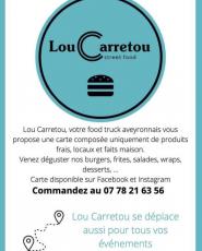 Lou Carretou, votre food truck aveyronnais vous propose une carte avec des produits frais, locaux, et fais maison. Lou Carretou se déplace aussi pour tous vos événements ( apéritif dînatoires, grillades, burger frites, desserts , … )